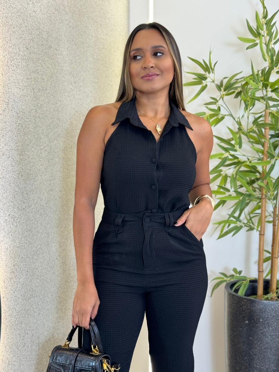 CONJUNTO CALÇA + BLUSA TEXTURIZADA MONICA PRETO