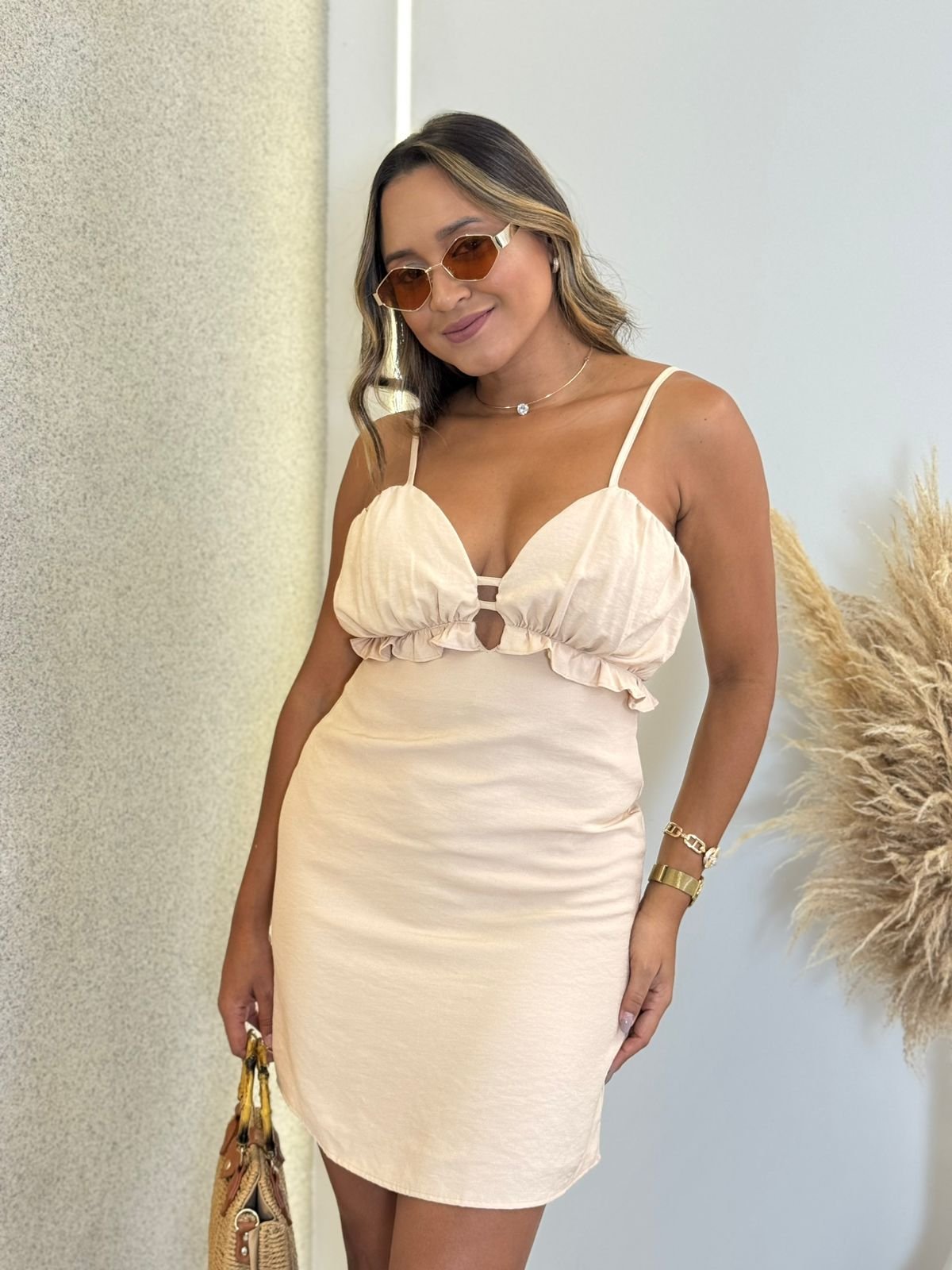VESTIDO COM DECOTE FRANZIDO EM ALFAIATARIA MARANT MARIA ALICE NUDE