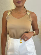 BLUSA EM CREPE SEDA TEXTURIZADO HELOISA NUDE