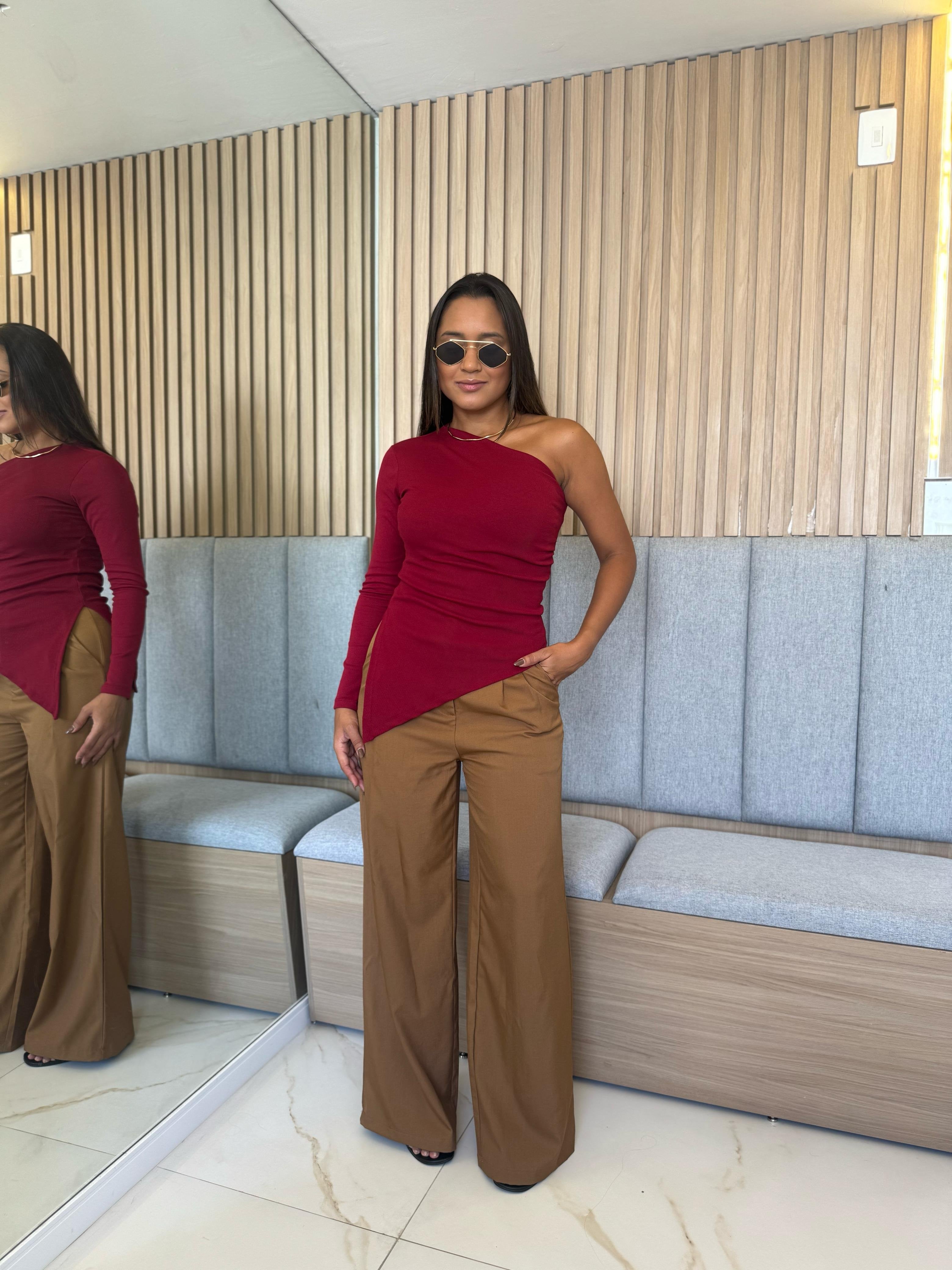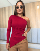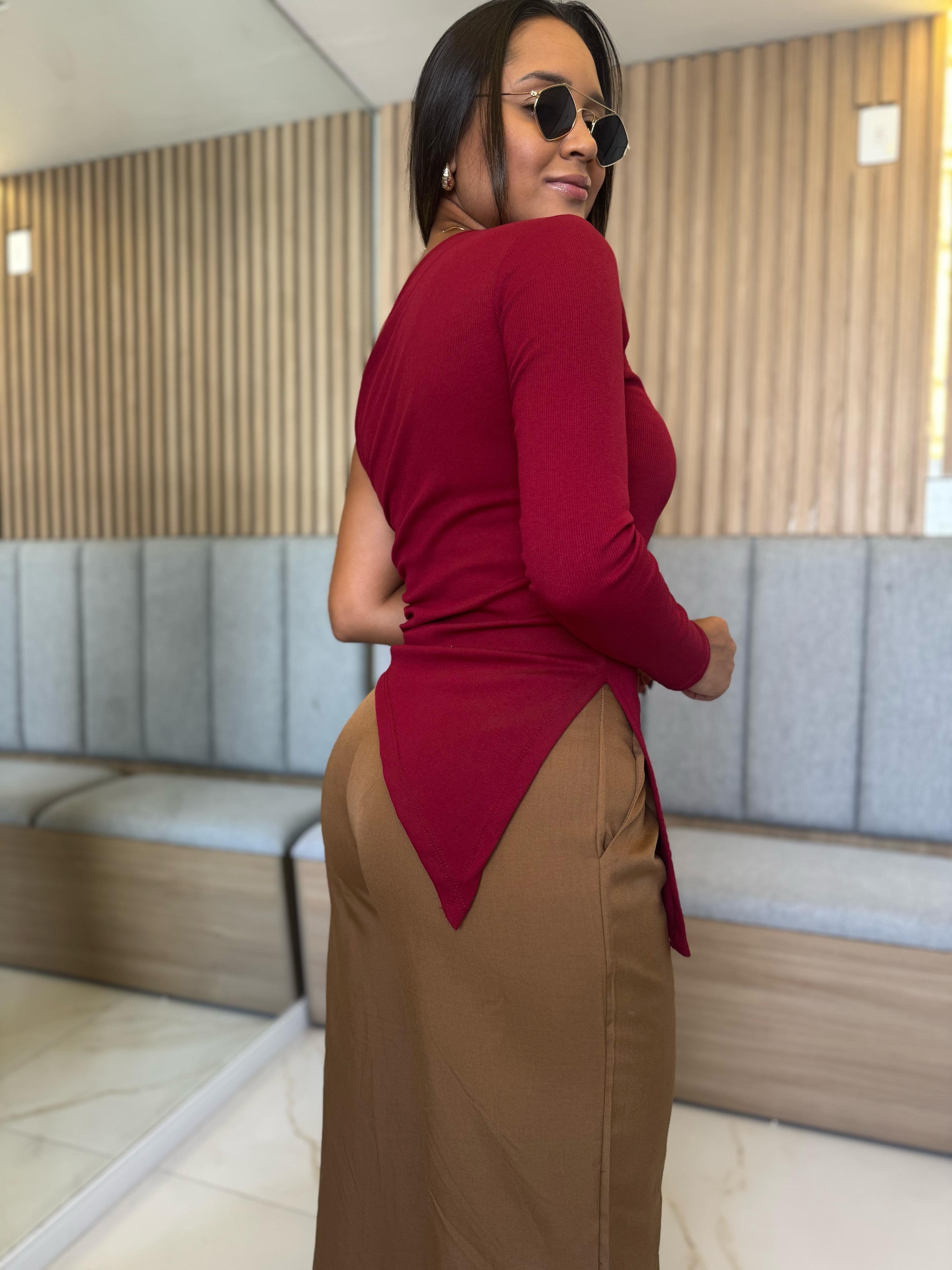 BLUSA FEMININA EM RIBANA LINDA MOÇA EXCLUSIVE PEROLA VINHO