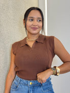 BLUSA FEMININA EM TRICÔ LINDA MOÇA EXCLUSIVE JOANA MARROM