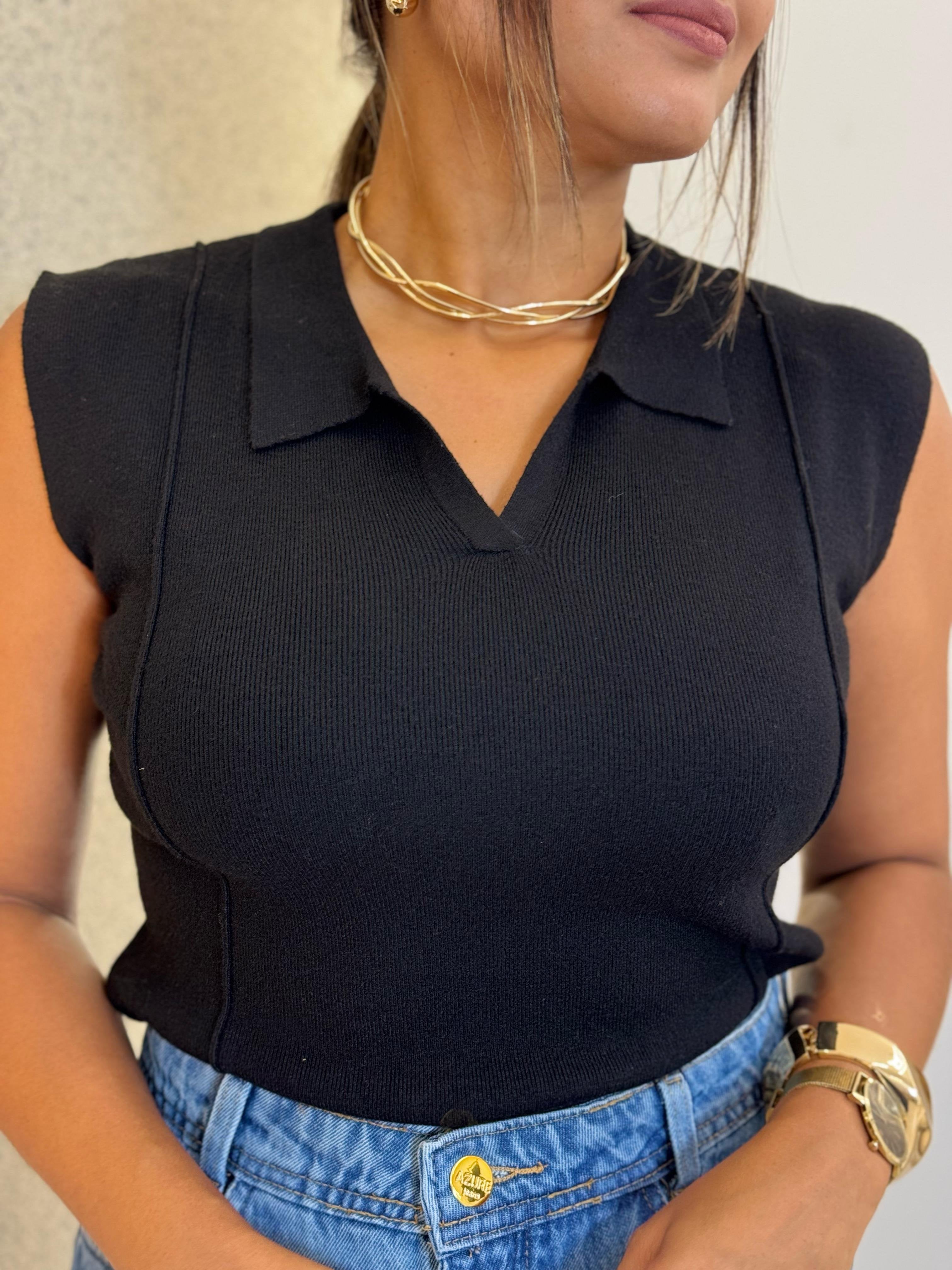 BLUSA FEMININA EM TRICÔ LINDA MOÇA EXCLUSIVE JOANA PRETA