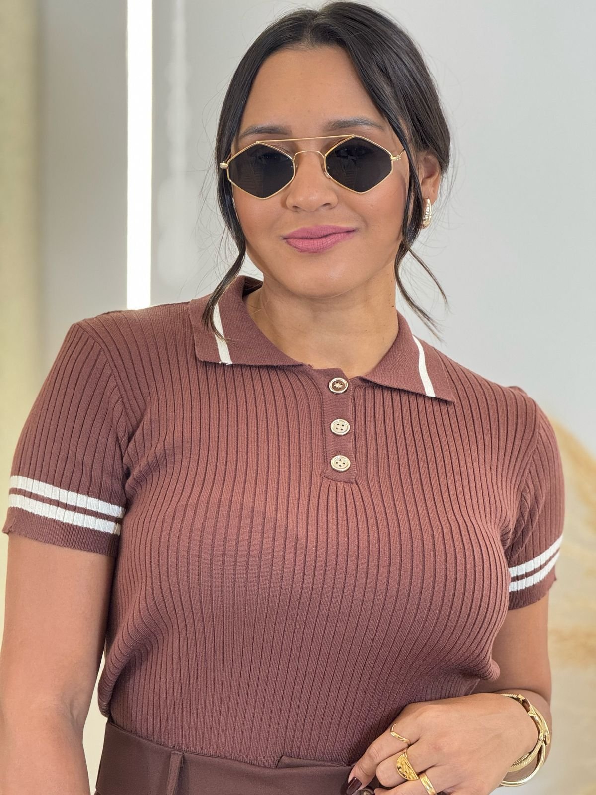 BLUSA FEMININA EM TRICÔ LINDA MOÇA EXCLUSIVE NATALIA MARROM