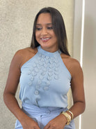 BLUSA FEMININA LINDA MOÇA EXCLUSIVE CAROLINA AZUL