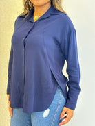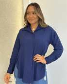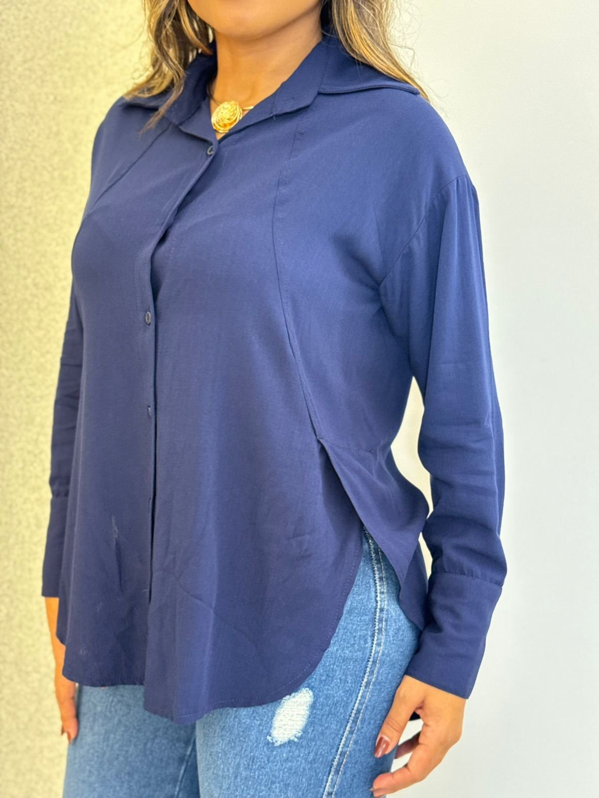 BLUSA SOCIAL EM VISCOLINHO AURORA AZUL MARINHO