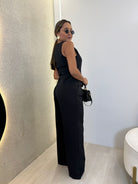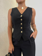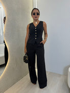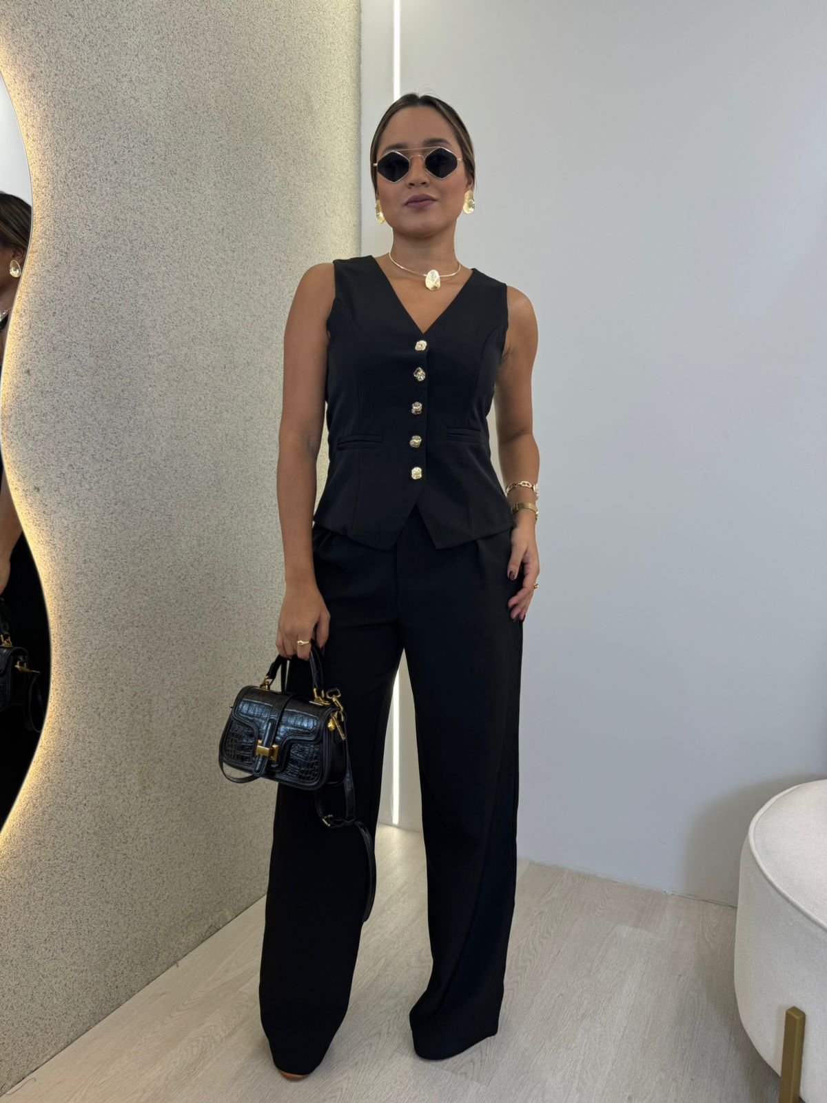 CONJUNTO CALÇA PANTALONA +COLETE EM ALFAIATARIA ALINE PRETO