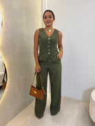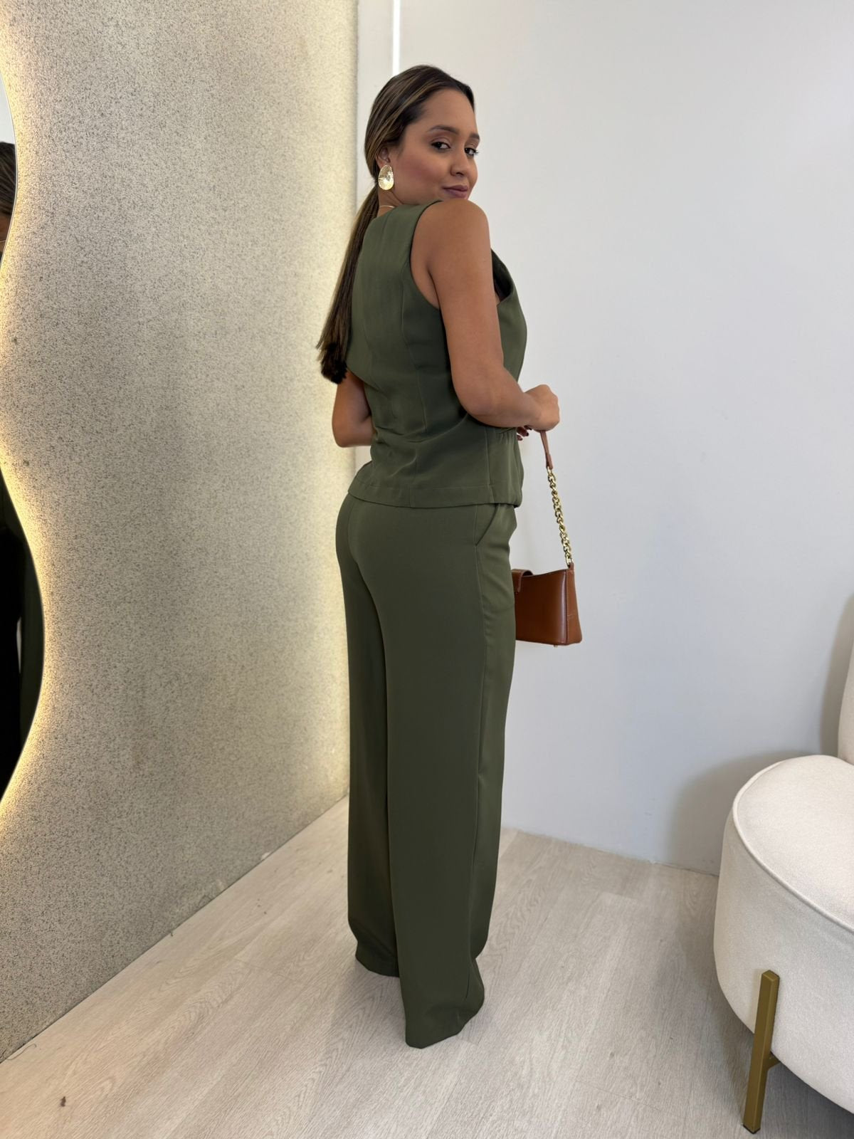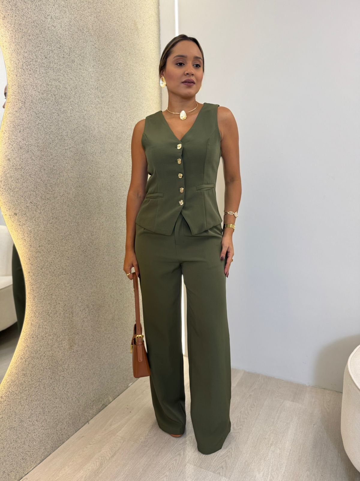 CONJUNTO CALÇA PANTALONA +COLETE EM ALFAIATARIA ALINE VERDE