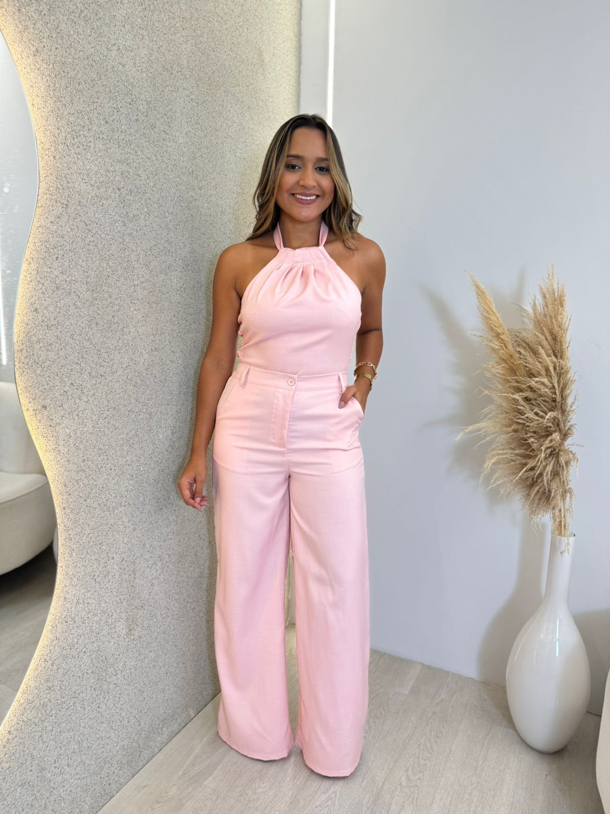 CONJUNTO CALÇA PANTALONA COM BLUSA FRENTE ÚNICA HELOISA ROSA