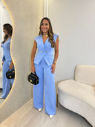 CONJUNTO CALÇA PANTALONA COM COLETE EM ALFAIATARIA THALYTA AZUL