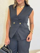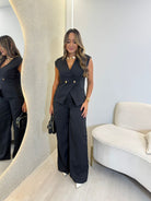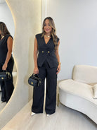 CONJUNTO CALÇA PANTALONA COM COLETE EM ALFAIATARIA THALYTA PRETO