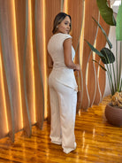 CONJUNTO CALÇA PANTALONA+BLUSA UNILATERAL GIOVANA NUDE