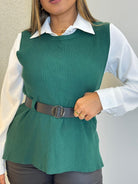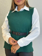 CONJUNTO CAMISA SOCIAL+COLETE TRICÔ E CINTO CAROLINA VERDE