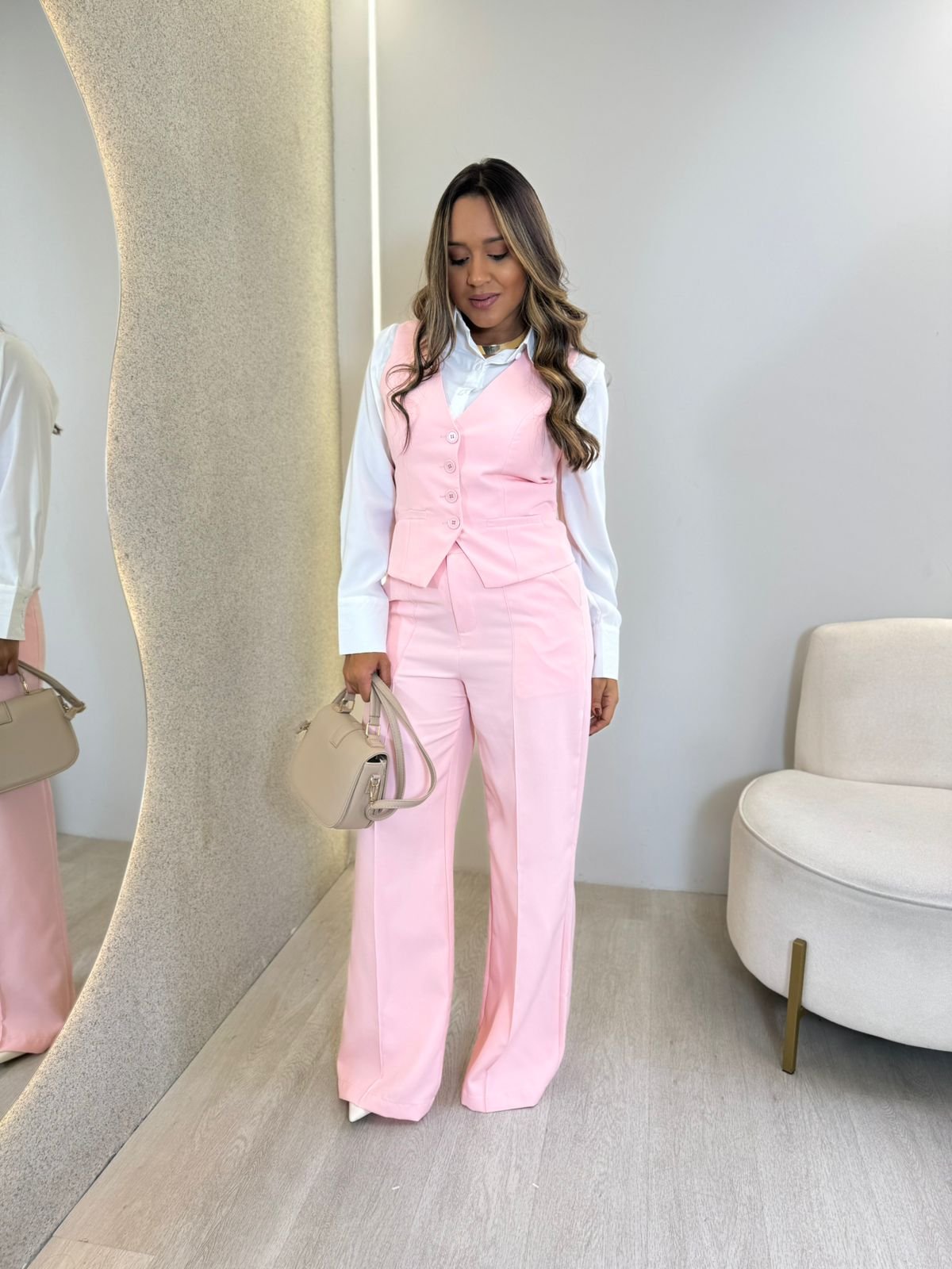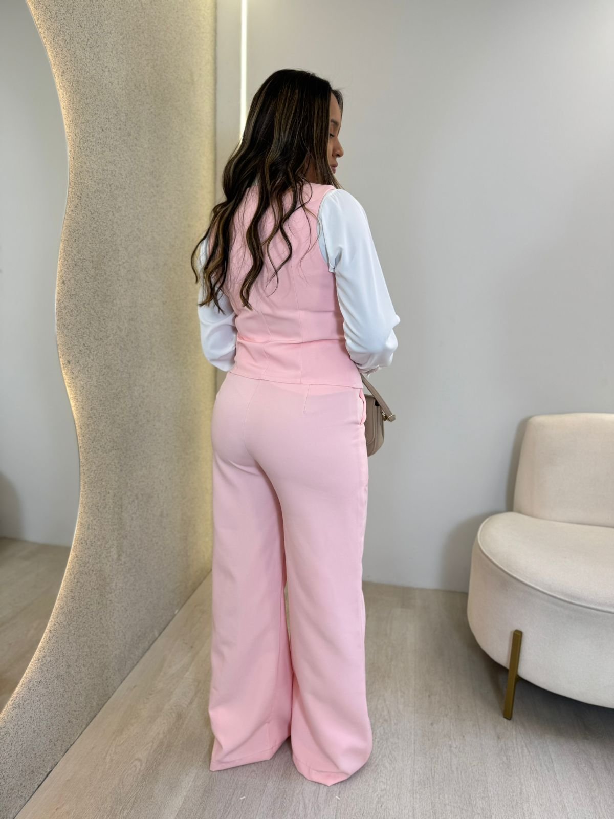CONJUNTO COLETE + CALÇA PANTALONA EM ALFAIATARIA CAROLINE ROSA