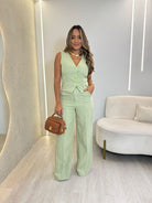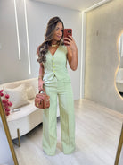 CONJUNTO COLETE + CALÇA PANTALONA EM ALFAIATARIA CAROLINE VERDE