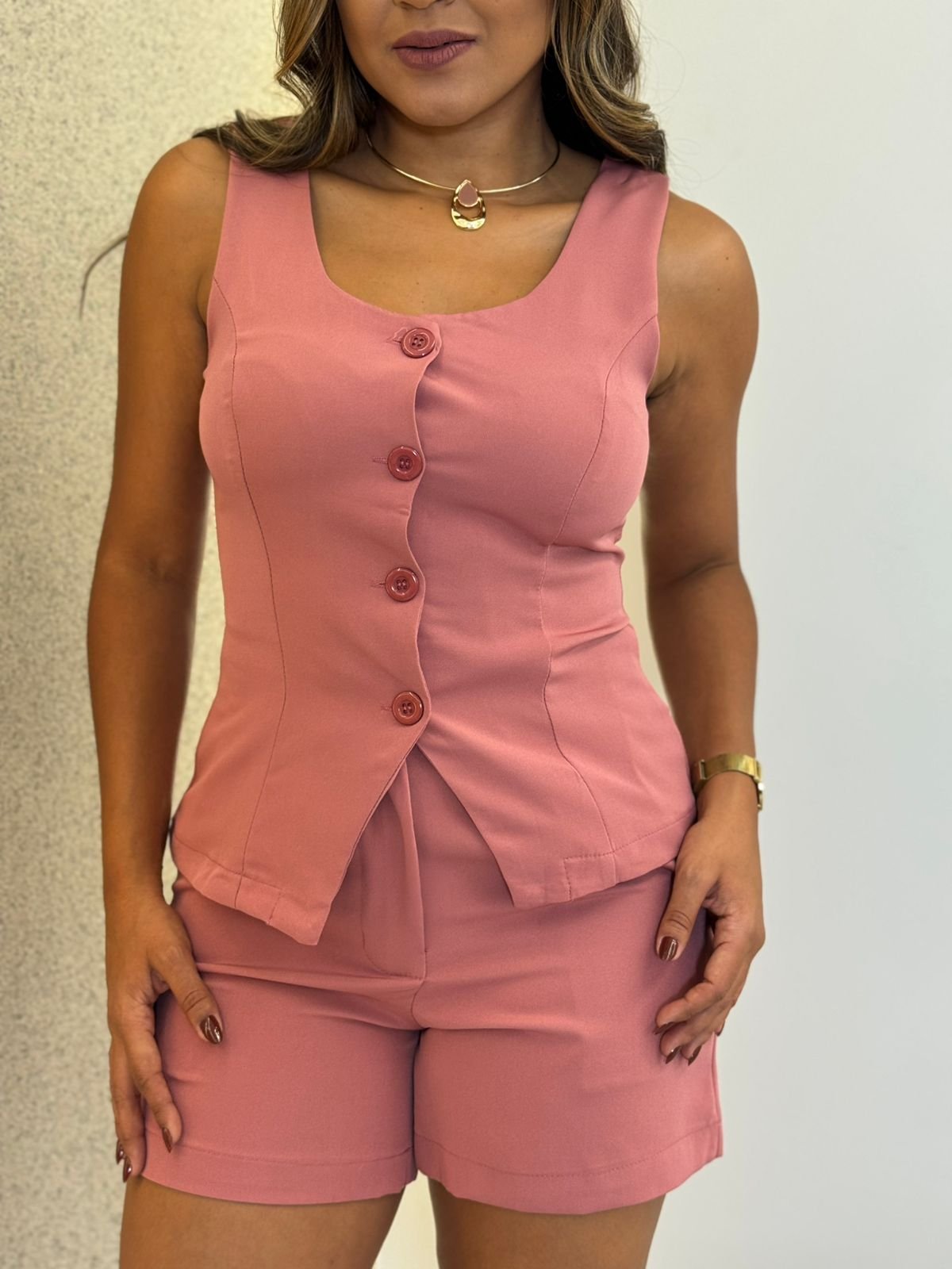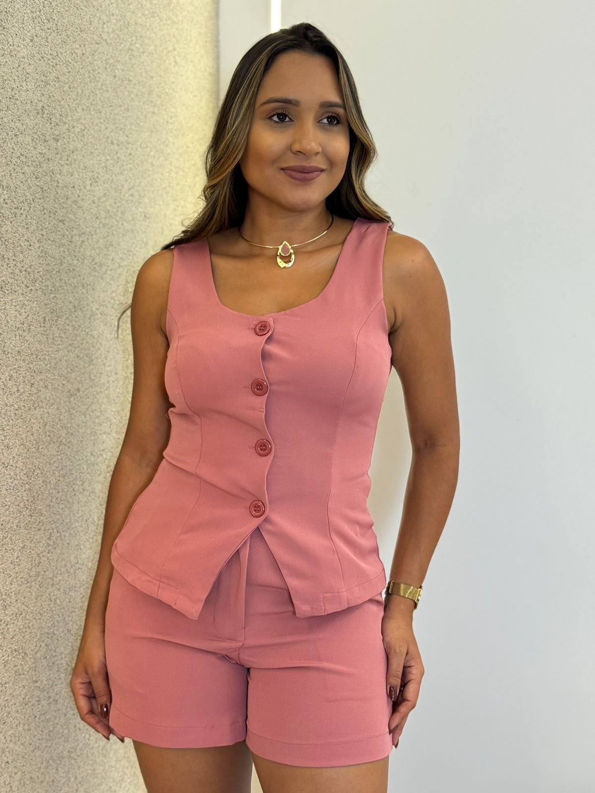 CONJUNTO COLETE COM SHORT EM ALFAIATARIA POLLY ROSA