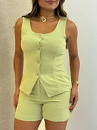 CONJUNTO COLETE COM SHORT EM ALFAIATARIA POLLY VERDE