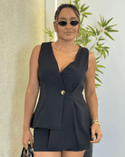 CONJUNTO COLETE COM SHORT EM ALFAIATARIA VALENTINA PRETO