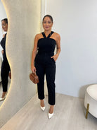 CONJUNTO DE CALÇA COM CROPPED FRENTE TEXTURIZADO AYLA PRETO