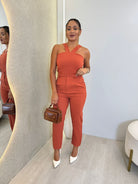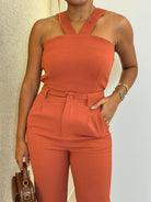 CONJUNTO DE CALÇA COM CROPPED FRENTE TEXTURIZADO AYLA TERRACOTA