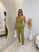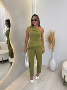 CONJUNTO DE CALÇA CORTE RETO E BLUSA UNILATERAL SOFIA VERDE