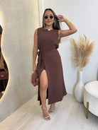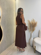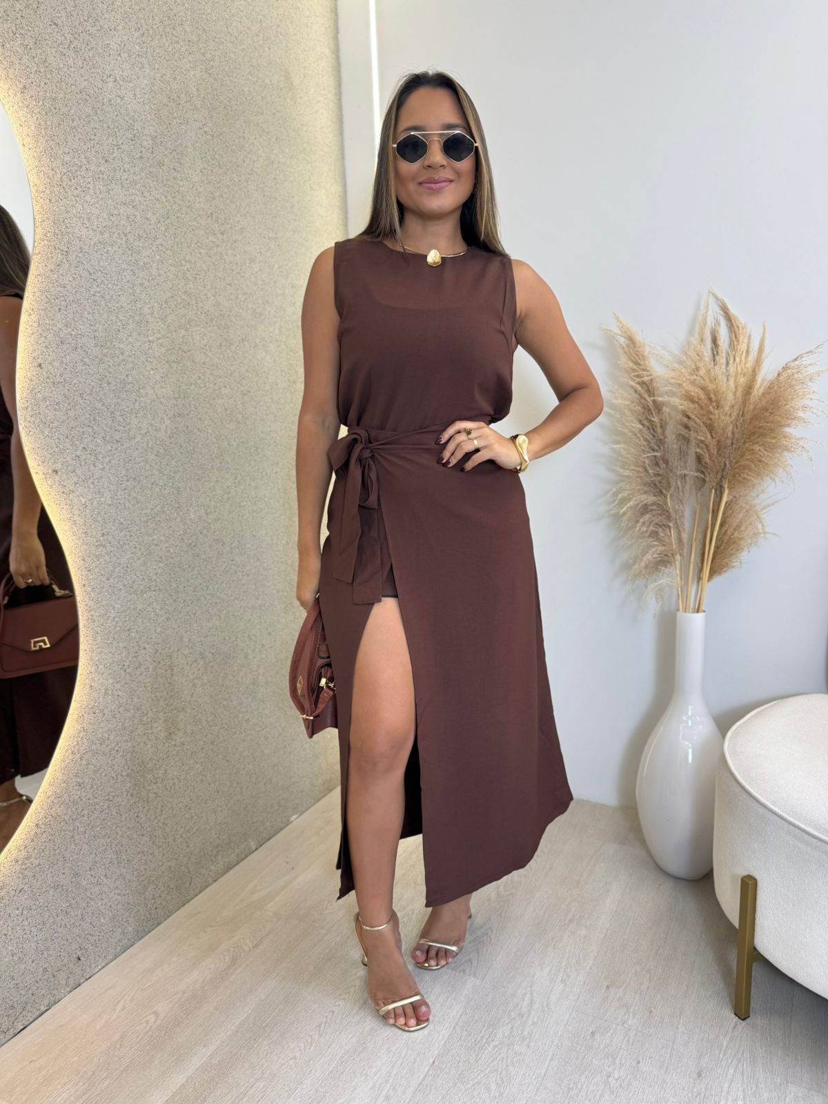 CONJUNTO DE SHORT SAIA ENVELOPE E BLUSA EM ALFAIATARIA MARANT HELENA MARROM