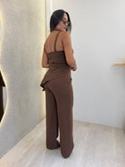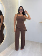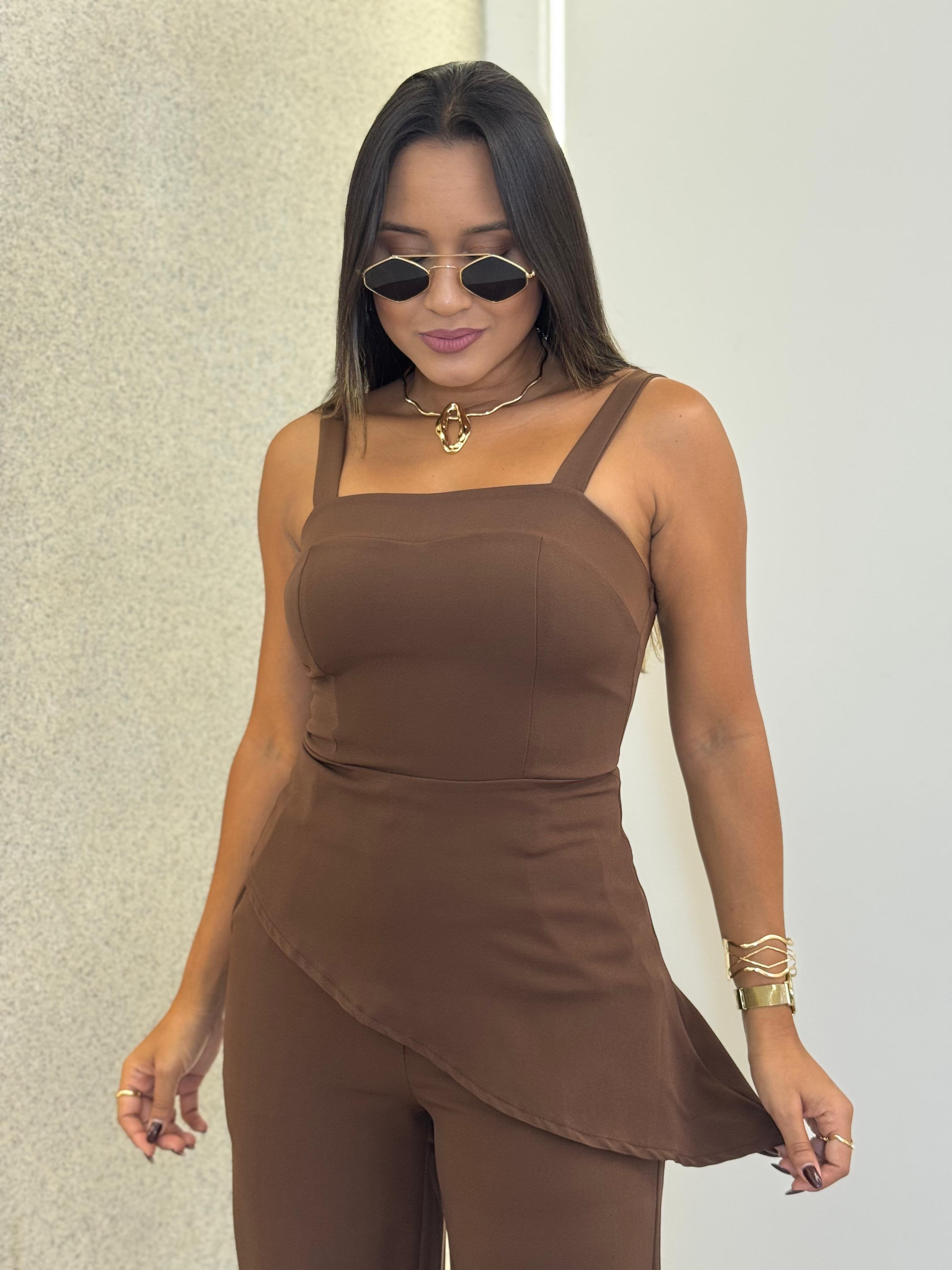 CONJUNTO FEMININO EM ALFAIATARIA LINDA MOÇA EXCLUSIVE GABRIELA MARROM