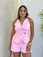 CONJUNTO SHORT+BLUSA ASSIMÉTRICA EM ALFAIATARIA DANI ROSA