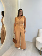 Descrição; Prático e cheio de estilo, o macacão pantalona é aquela peça curinga que vai do dia para a noite com facilidade. Feito em tecido leve e com modelagem soltinha, garante conforto o dia todo. Combine com tênis para um visual despojado ou com salto para um look mais arrumado.