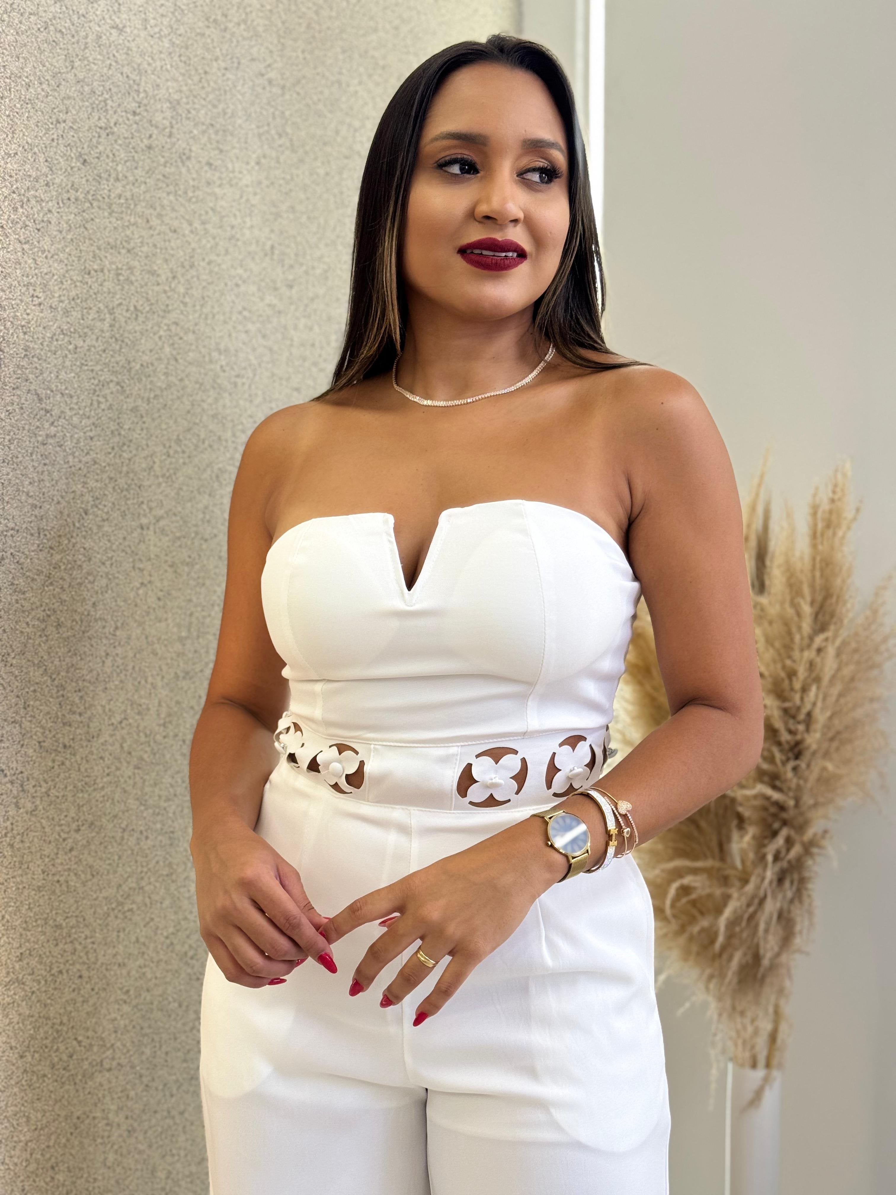 MACACÃO FEMININO EM ALFAIATARIA LINDA MOÇA EXCLUSIVE RAYANE BRANCO