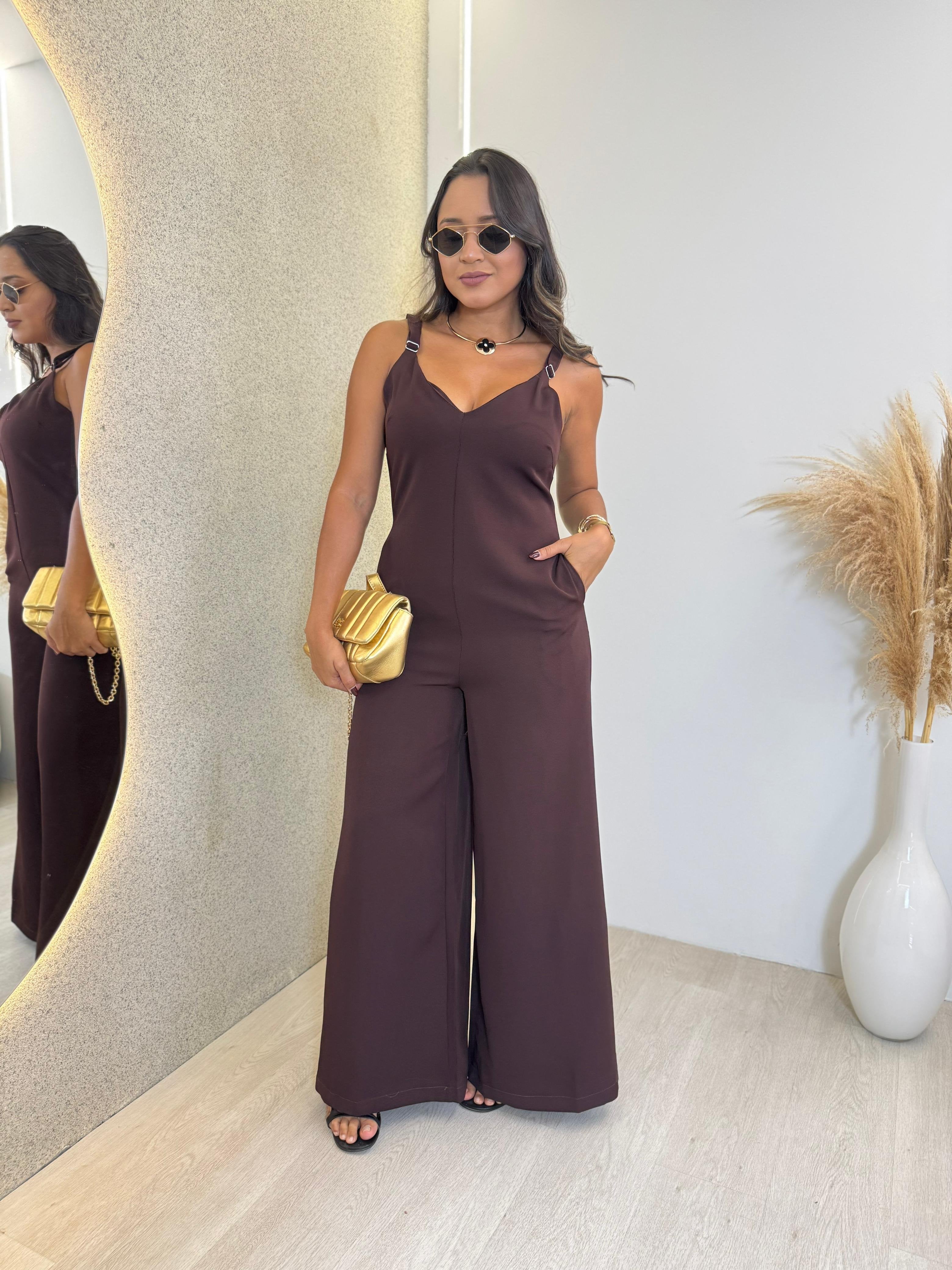 MACACÃO FEMININO EM ALFAIATARIA LINDA MOÇA EXCLUSIVE SOFIA CAFÉ