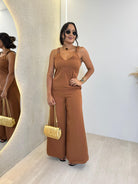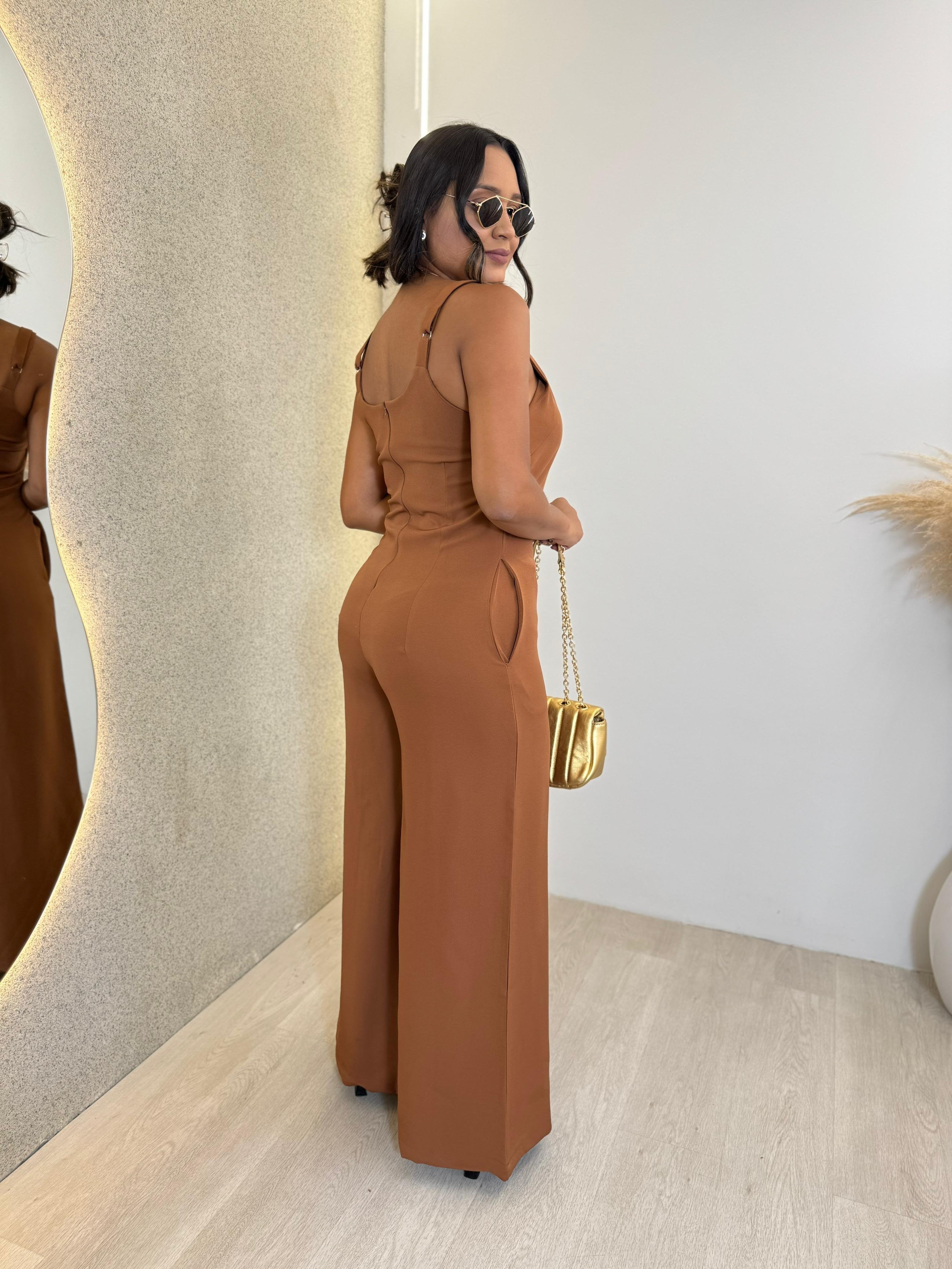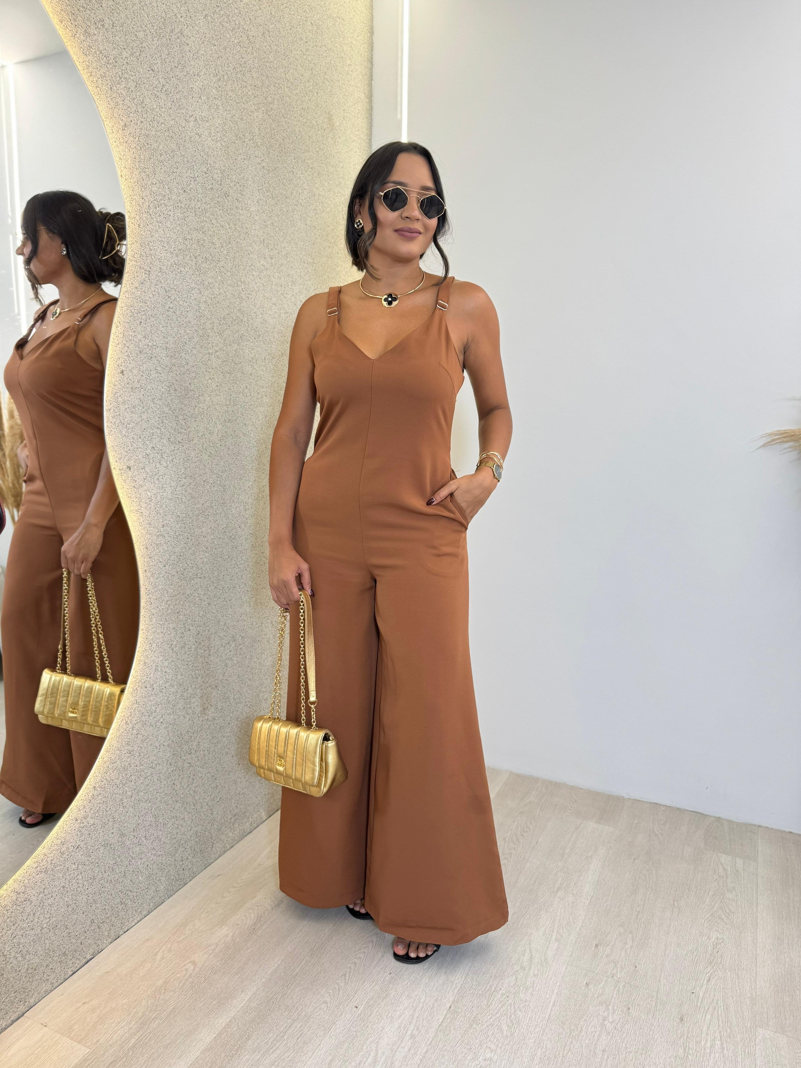 MACACÃO FEMININO EM ALFAIATARIA LINDA MOÇA EXCLUSIVE SOFIA CARAMELO