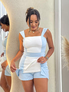 Descrição: Moderno e cheio de charme, o macaquinho bicolor é uma peça perfeita para quem busca estilo e praticidade em um look único. Combinando duas cores harmoniosas, ele cria um efeito visual sofisticado e fashionista. A modelagem é ajustada na medida certa, valorizando a silhueta com conforto.