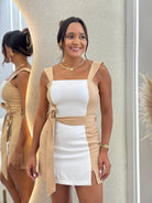 Descrição: Moderno e cheio de charme, o macaquinho bicolor é uma peça perfeita para quem busca estilo e praticidade em um look único. Combinando duas cores harmoniosas, ele cria um efeito visual sofisticado e fashionista. A modelagem é ajustada na medida certa, valorizando a silhueta com conforto.