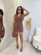 MACAQUITO FEMININO EM ALFAIATARIA LINDA MOÇA EXCLUSIVE MELINA MARROM