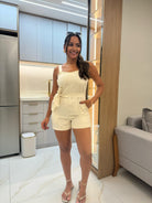 MACAQUITO FEMININO EM ALFAIATARIA LINDA MOÇA EXCLUSIVE MONIQUE CREME
