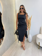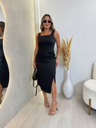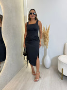 VESTIDO MIDI DECOTE QUADRADO EM ALFAIATARIA VITORIA PRETO